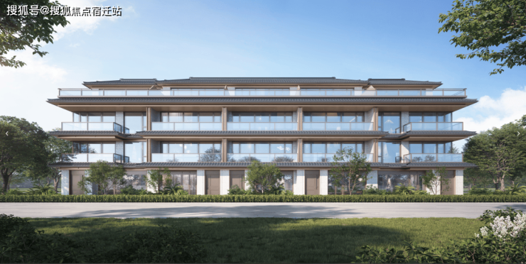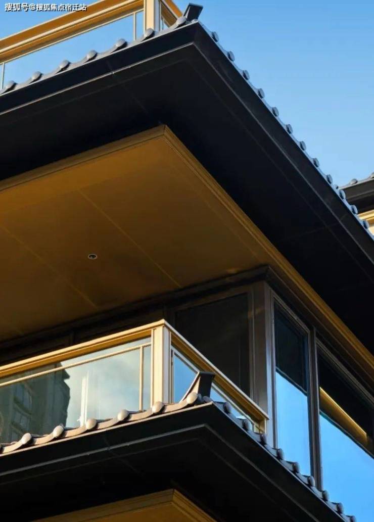 三重屋檐,代表天地人融合的东方宫殿最高等级,上檐、外檐、下檐三重结构,现代立面,以铝板、格栅、石材、瓦墙型材、玻璃等现代型材,彰显传世之宅的独特气度。摒弃早期中式建筑的白墙黑瓦,精研居住建筑的材质与色彩搭配,注重冷暖的多重对比。中式建筑的立面呈现出的不是粉墙黛瓦,而是「宋韵五色」。