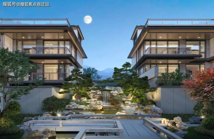 久映颂月府的投入远不止这些奢石、古树,从排屋建筑外立面也能看出一些隐形成本,伊朗进口的蓝眼睛石材,大面积落地玻璃,香槟色铝板,就连北向立面也是如此。排屋能成为改善天花板,是因为其有天有地,有私密性,久映颂月府则把这些属性拉满。在常规的排屋打造基础上,久映颂月府进一步精进产品户型设计,提升排屋产品的附加值。