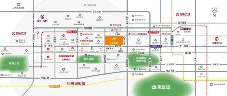 【交通】:地铁5号线五常站500米;地铁19号线荆长路站300米,东面绕城高速链接诸永高速、沪昆高速、杭甬高速;绕城高速、 留石高架、上塘高架、文一西路、文二西路。