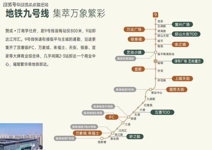 9号线快速连接临平与主城的通勤,沿途更是集齐了顶级IFC,万象城,来福士,天街,银泰,宜家等大牌商业综合体,几乎2-3站即达一个商业中心,璀璨繁华乘地铁即可到达。