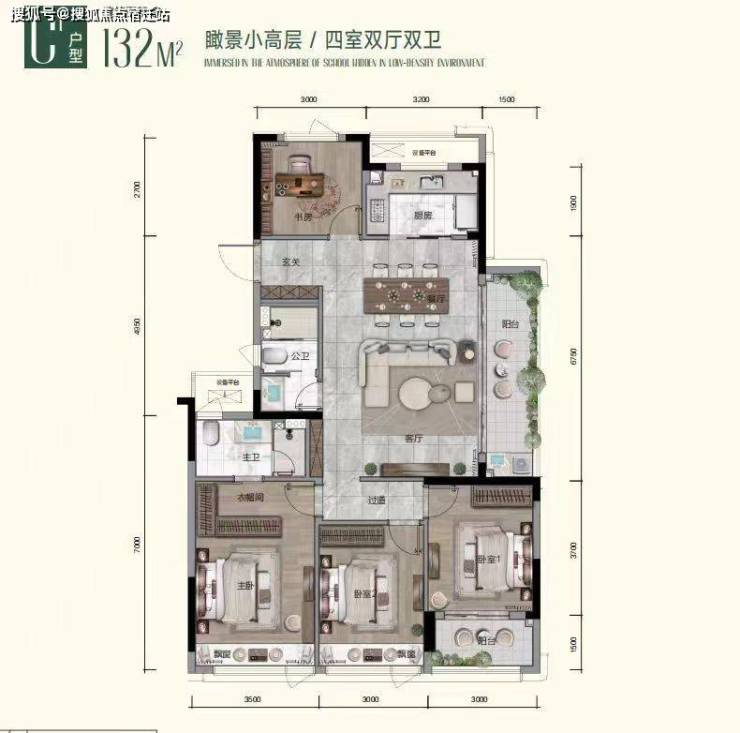 约7.5米宽景双联阳台,风景入室,绿意盎然 ,客餐一体化宽厅,南北通透,自在舒朗。