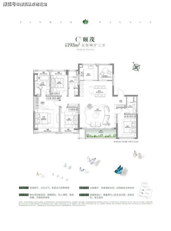本次「中环金茂府」二期推出建面约168-228平4-5房户型产品,均为大尺度奢阔户型,终极改善只需一步到位!