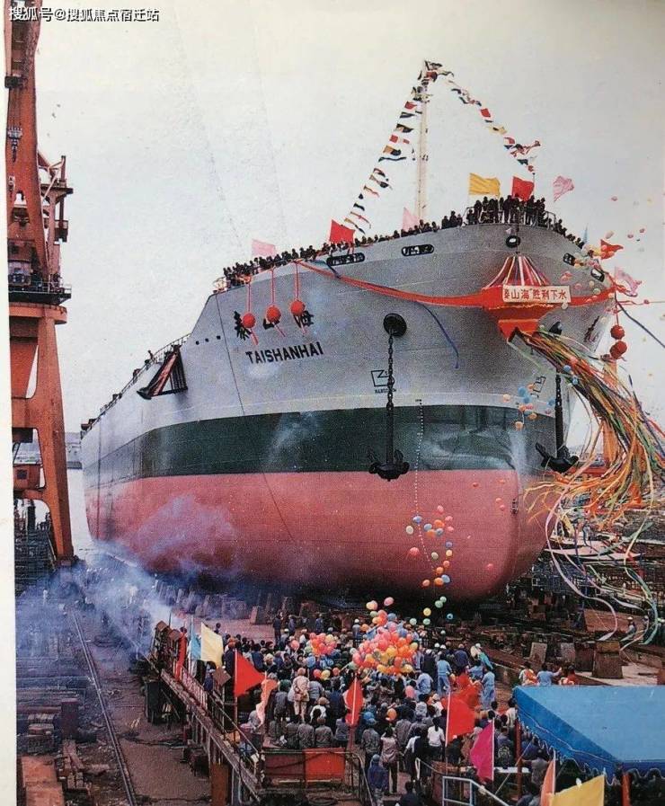 20世纪90年代,杨浦区中华造船厂新船下水仪式