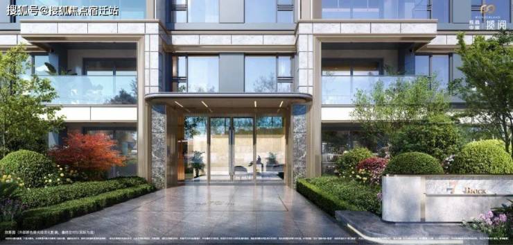 汲取世界知名度假酒店灵感,在入户大厅的外墙上采用香槟金铝型材与灰色石材,门头雨棚采用香槟金色弧形铝板装饰,搭配大玻璃面更加通透近人,营造颜值与尊贵并存的归家体验。