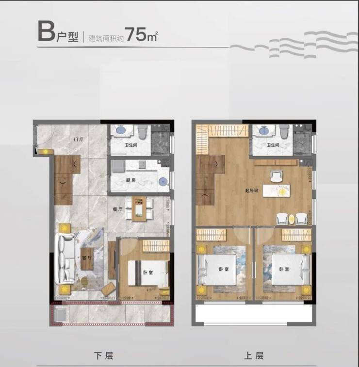 双钥匙LOFT:建筑面积约35-76 ㎡双钥匙LOFT,户型灵活多变,二层独立多空间设计,实用性高。