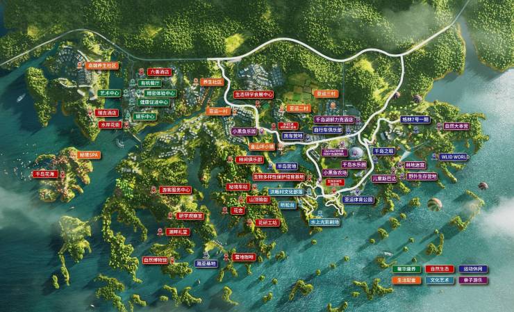 项目总面积约12600亩(水陆面积1:1),布局东部·运动、西部·康养两大板块,规划WILD WATER、WILD WORLD、湖上森林、康养度假中心四大引擎,组建四大社群,提供多达200种玩法,满足不同旅居需求,其中第一期已经投入运营。