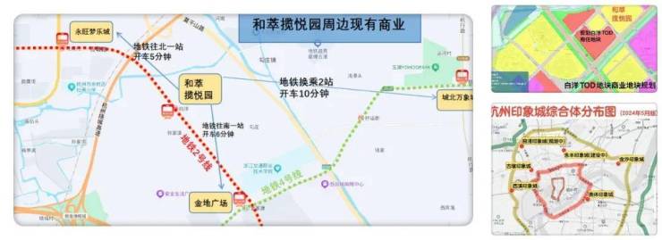 2⃣、商业 2号线一站可达永旺梦乐城,金地广场,三站可达龙湖天街,城北万象城,西田城,303美食广场,车程都在12分钟内。3公里生活圈近60万方商业体,繁华商业环绕。且未来家门口商业地块有重磅商业预期。