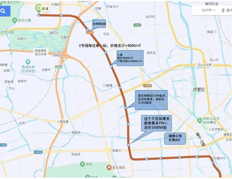 🔲 价格没有突破限价:和萃揽悦园作为不限价项目,但是价格并没有突破限价,限价时代,2号线良渚的新盘都要卖到2.9-3万均价,作为位置更靠近市区,且产品完全跨代的项目,并没有突破限价,性价比直接拉满。