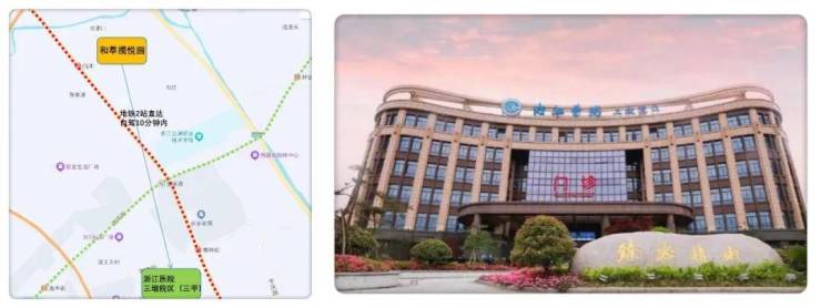 4⃣、医疗2号线地铁两站可直达浙江医院三墩院区(三甲),自驾开车10分钟内,为您的生活保驾护航。