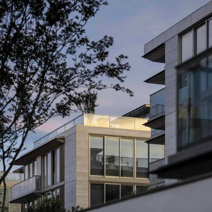中式合院区采用传统建筑“社区”布局,遵循轴线对称的礼仪,强调庭院的私密感。而现代叠墅区则呈现出一种与前者不同的氛围,一种更加透明、开放的现代风格,但又不失整体礼仪。