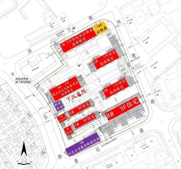 社区内部计划设置下沉式庭院、景观构架等设施,并全面实现人车分流。