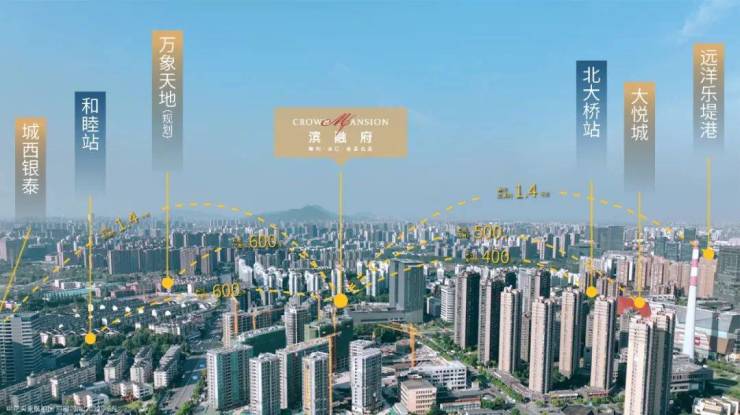 项直线约2公里范围内有多家大型商业综合体,如大悦城、城西银泰城、乐提港等,整个板块的商业体量超过了 200 万方。距离项目直线距离约500米,步行大约5分钟,是杭州首座大悦城,是集购物中心、滨水街区、地标商务于一体的“商业驱动型”城市综合体。