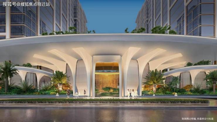 大门超百米,巧妙融入棕榈树阵的仪式感,结合镂空天井引入四时光影,打造地标级归家礼序。