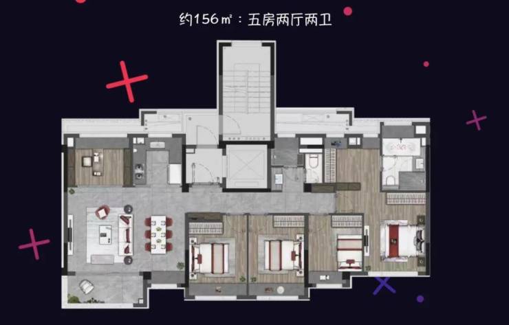 122平的4房2卫户型,大横厅飞机户型,总价600万起步。