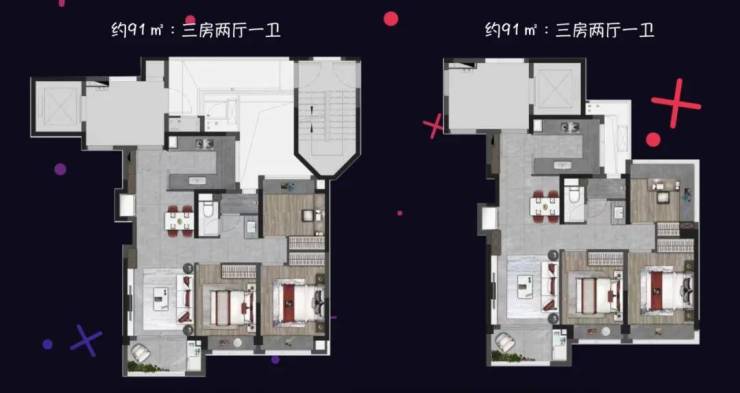 91平的3房1卫户型,动静分离设计,预计总价400万级别上车。