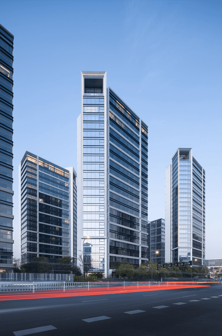 在细部构造上,我们借鉴了工业设计的手法特征,在色彩上尊重杭州水墨江南的城市意象,用银灰色黑色两种金属线条勾勒形体,搭配不同色泽度的玻璃,体现出建筑的未来感和科技感。