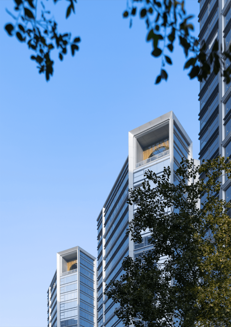 扭转的形体序列形成了城市界面上的标志性和爆发力,尤其在两条城市主干道上,通过形体的扭转和西低东高的布局,在呼应城市脉络的同时,使得景观价值最大化;