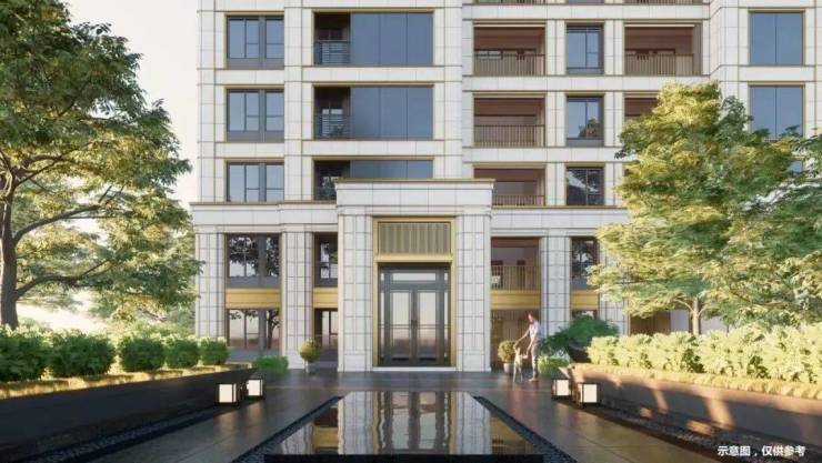入口中轴对称式的前厅水景,两侧阵列由榉树围合组成,不仅拥有“门前中举”的美好寓意,也让入口的仪式感拉满,与灵动的喷泉水景交相辉映,形成具有东方礼序的归家体验。
