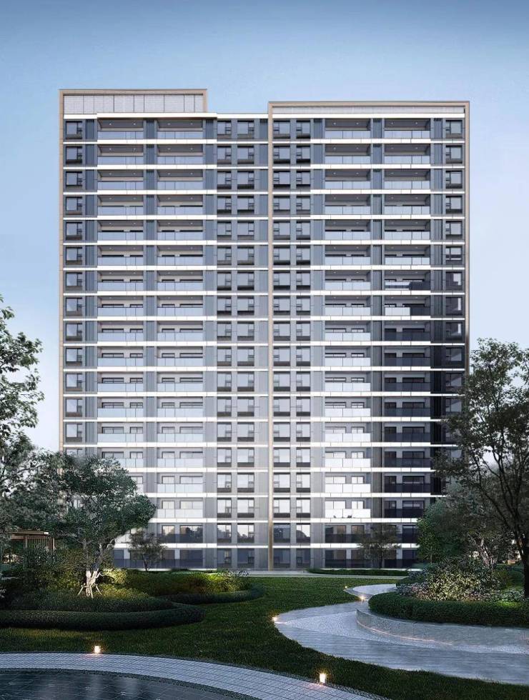 •现代典雅立面彰显人物审美,玻璃栏板+一体板+铝板+石材的考究设计质感历久弥新。深浅灰色叠加香槟金色的极简色彩美学塑造精致奢华氛围,以高级质感为东蠡湖生态优居板块呈现全新的视觉冲击。