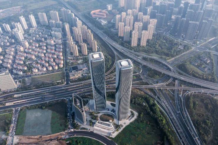 作为杭州的地标性建筑,世茂智慧之门的外观设计灵感源自“未来之门”,以流线型的双塔形态,寓意着开放与包容,象征着企业面向未来的无限可能。两座塔楼通过空中连廊相连,不仅增强了建筑的整体感,更为入驻者提供了一个独特的观景平台,可以俯瞰钱塘江的美景,远眺杭州的城市天际线,感受大自然的壮丽与城市的繁华交织的壮丽画卷。