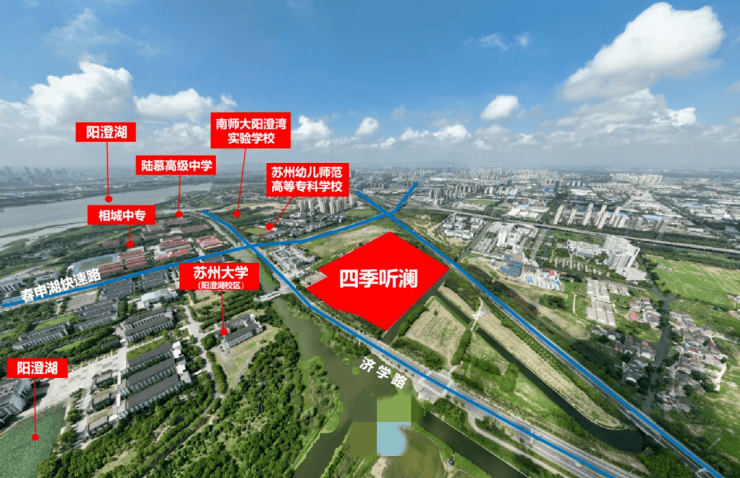与此同时,这里还是饱含书香气的学府板块,苏州大学阳澄湖校区就在项目一路之隔,还有像陆慕高级中学、苏州幼儿师范等多个高质量学校。