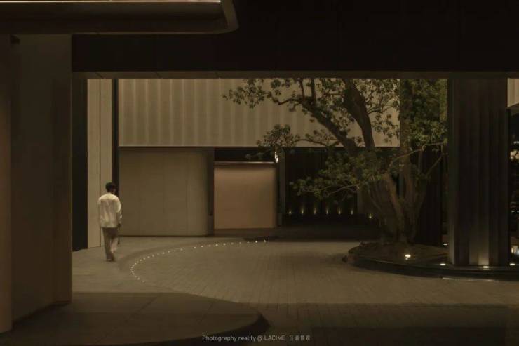 招商玺是整体大区抬高 4 米的设计,在归家那一刻就建立私属的感受。经由前厅的紫铜照壁,走到背后便是直达大区地面层的电梯,电梯开门便可感受扑面而来的秘境。两侧礼序景墙界定着归家水院的尺度,六颗油橄榄层层递进,经年累月展示异域风华,树宅相守的传统居住文化再度相生,秩序与韵律则成为了空间的主旋律