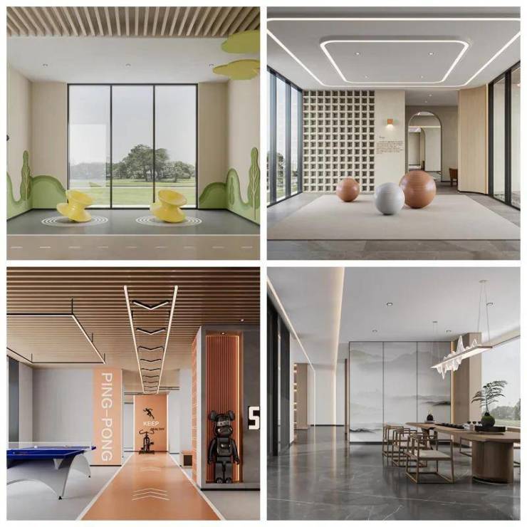 除了建筑立面的独特设计外,北宸学府在园区配套上也下足了功夫。项目内规划了10个精奢定制的架空层空间,这些空间根据功能的不同被赋予了不同的主题与风格。静谧书吧、典雅茶室、业主会客厅、儿童玩乐区、成人健身区……各类空间应有尽有,满足了不同年龄段居民的需求。而部分架空层采用的全落地玻璃封闭设计,更是让居民在享受室内舒适环境的同时,也能感受到室外的自然风光。