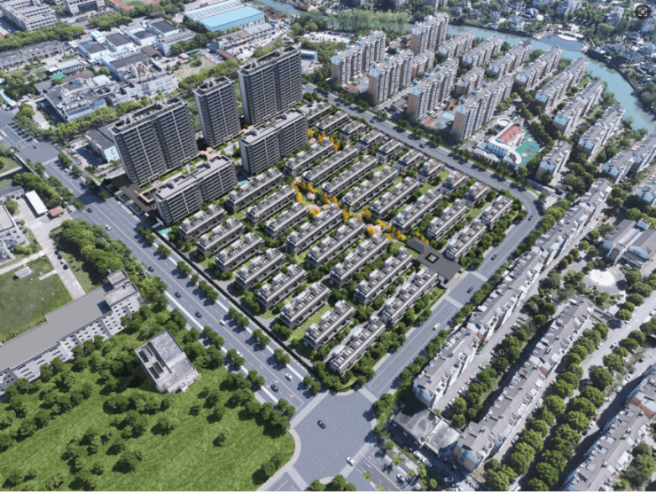 项目占地约5.8万方,打造34栋联排+2栋洋房+3栋小高层,共计375户。