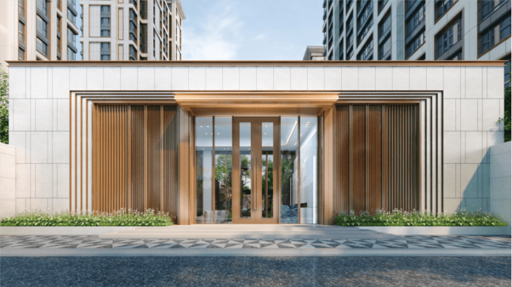 项目在外立面上,用现代格调和海派奢雅勾勒出了建筑封面,现代几何立面与线条沟壑的有序错落,精致利落而不失韵律~