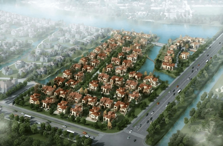 同润圣塔路斯位于松江泗泾版块,项目东临刘五公路、北面和西面临天然河道——泗泾塘、南临古楼公路;采用美国南加州的建筑风格,外立面采用淡黄色的手工Stucco抹灰外墙和红瓦屋顶,将原汁原味的南加州风格复刻至此,同时融入原木、三色瓦片、红砖、铁艺、各式烟囱等元素,渗透一砖一瓦,仿佛置身异国小镇。