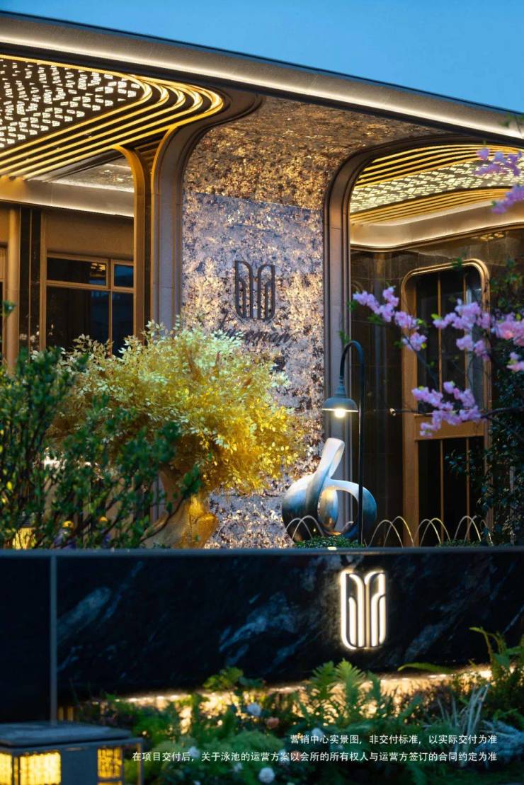 不至于尺度的震撼,宽庭得以匹配名门仪制的精髓,更在于其难以掩藏的匠心。南山工匠跨越全球采撷安哥拉黑、雪山白、普拉达绿等全球奢石,累计上百小时的研磨精锻,旨为不负跨越山河的厚重质感,敬呈嘉定熠熠生辉的主城壹号门牌。门庭中央,一尊仿玉石艺术装置巍然矗立,成为视觉的焦点与尊荣的引领,这不仅是一件艺术品,更是“缦奢归璞”的序曲。