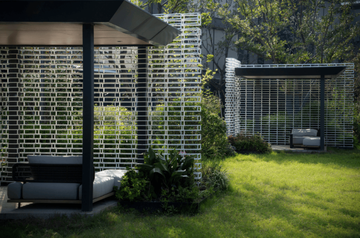可移动的花箱、像素雕塑等,划分出不同功能和主题的小花园;一道道艺术景墙、水景和四季绿植,赋予空间透视的深邃与变化;花窗、月亮门、连廊等传统中式元素的融入,构建动态屏风……人们行走其间,不仅能感受到中国古典造园之美,更可领略归家的层层仪式感,体味到心境的轮转。