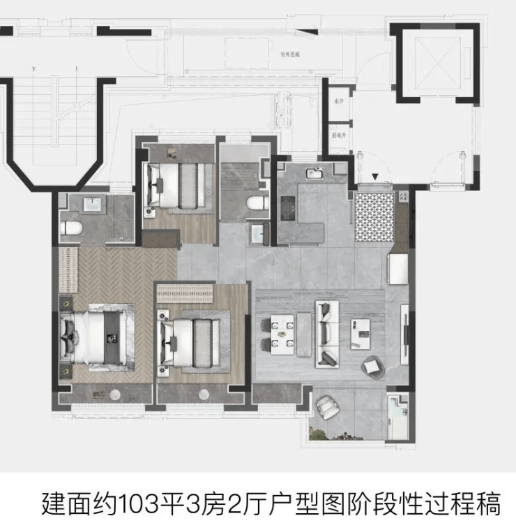 比起市面上普遍的三开间朝南动静分区户型,建发·海阅首府该户型至少有3大爆点: