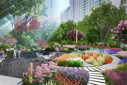 园林景观:以“五进归家礼序”为核心,打造“五境十二景”的立体园林画卷,融入《富春山居图》元素,设置意境山水、百米长廊、奇花异树、全龄活动区、智慧园林等景观节点,营造诗意栖居氛围。