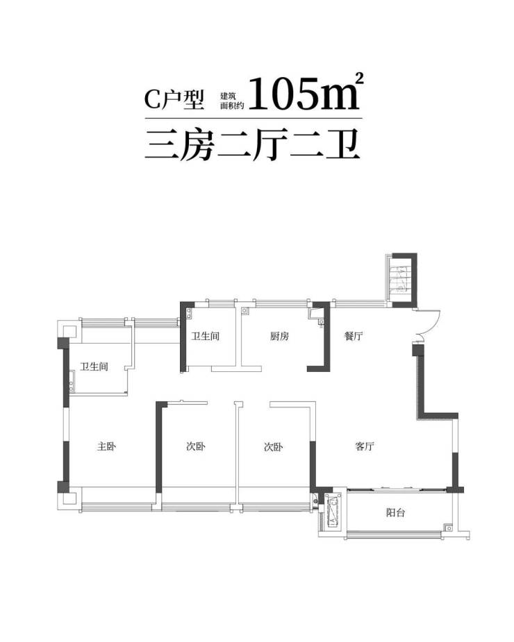 建筑面积约100㎡雅致三房两卫