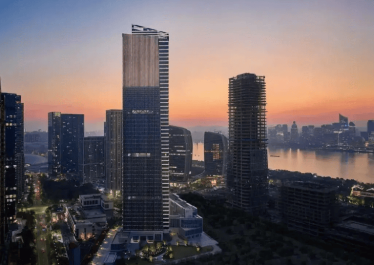 位于杭州市萧山区义桥镇时代大道与滨江路交汇处,备案名“潮鸿云筑”,由本土品牌房企顺发集团与绿城中国联合开发,是集高端住宅、滨水商业于一体的城市级综合体。项目总建筑面积约25万平方米,容积率仅1.8,主力户型为334-405㎡5至7房,得房率高达82%,是萧山主城芯罕见的低密社区。项目采用新亚洲建筑风格,以“一轴三园五巷”园林布局,打造沉浸式江南院落美学。