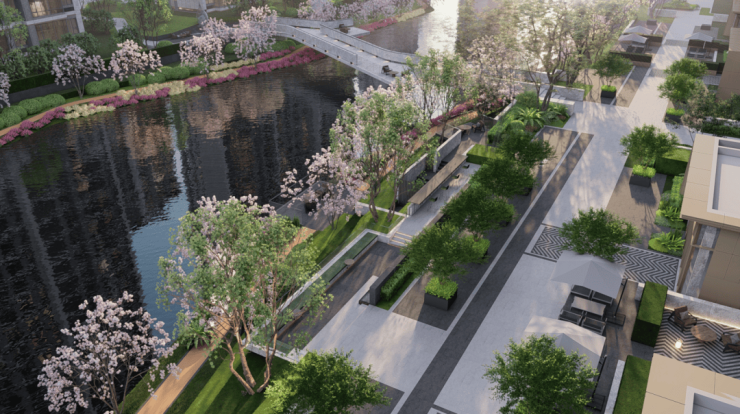 项目由两条天然水系穿流而过,形成三座天然的“岛屿社区”。