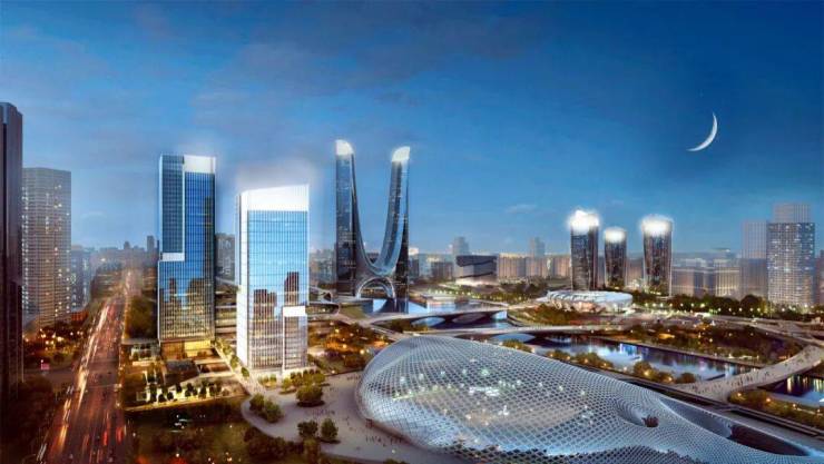 高约160米,是地铁6号线博览中心站上盖,北邻奥体“大墨镜”,南接国际博览中心。