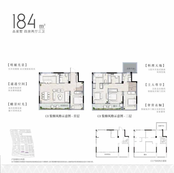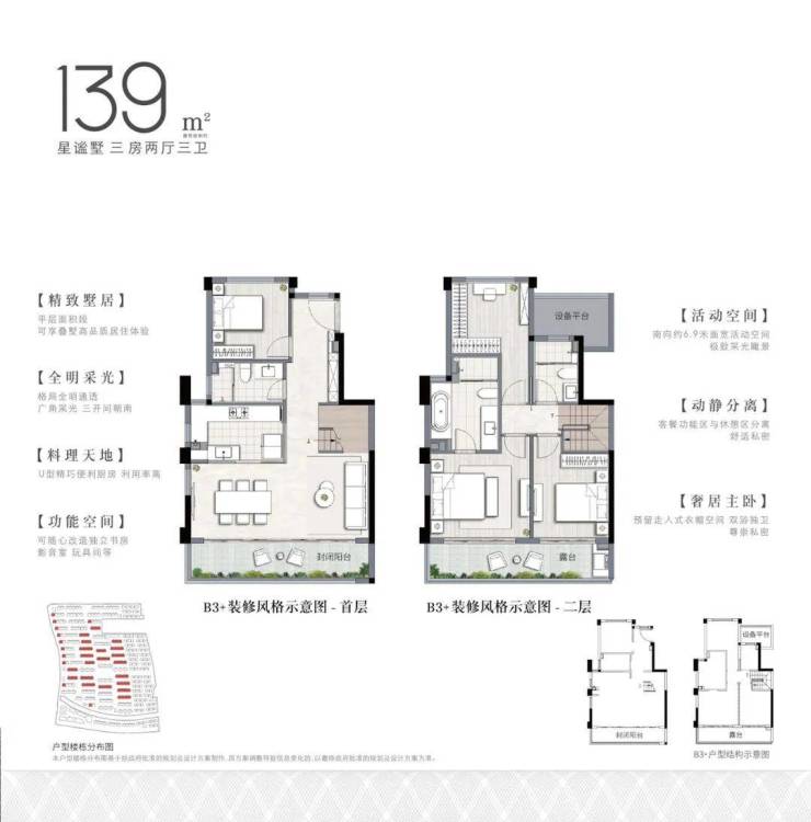 🍀 叠墅、平层:精装+地暖+智能家居(精装标准3500元)下叠地下室毛坯