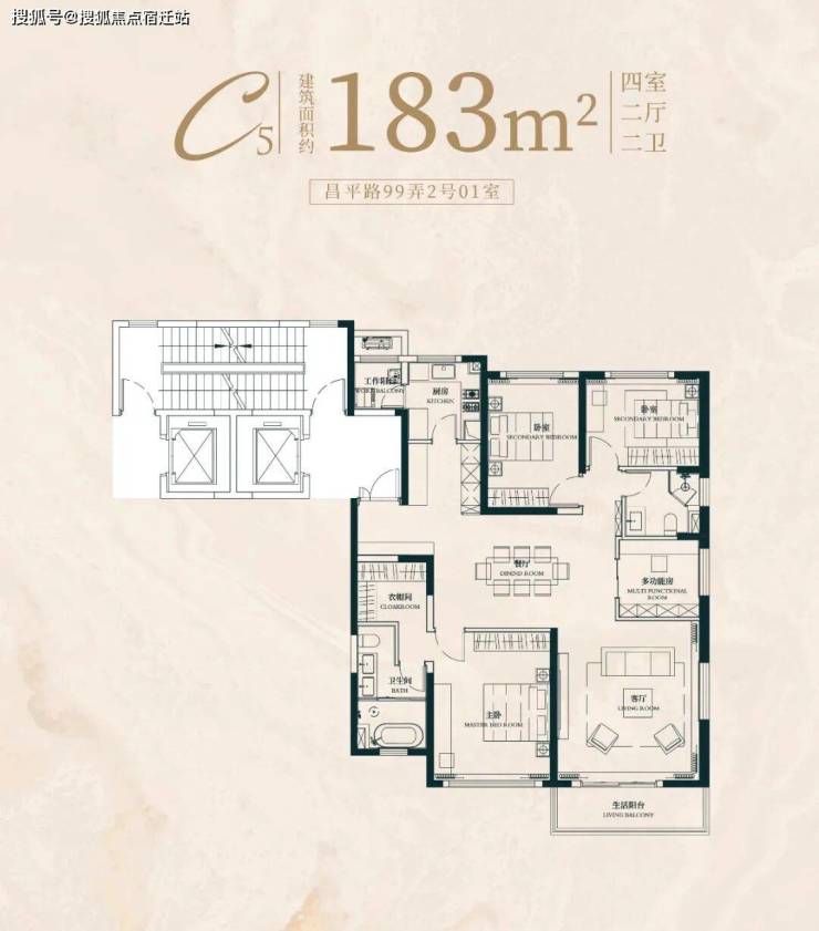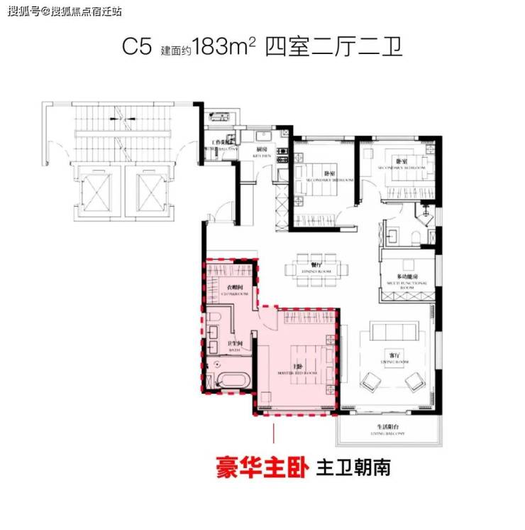 建面约183㎡4房2厅2卫户型: