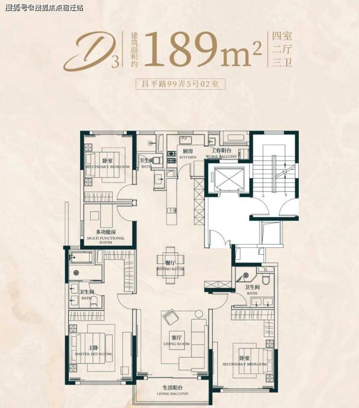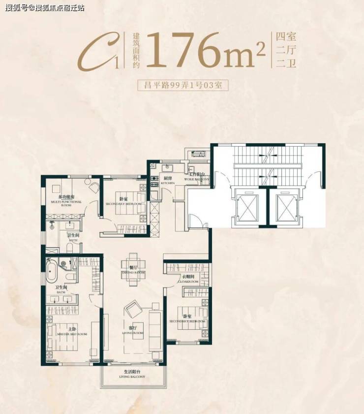 建面约176㎡4房2厅2卫户型: