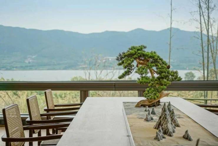小镇接待中心位于半山,巨幅玻璃窗引山水入画。在此小憩品茗,顿感心旷神怡,胸怀洒落。