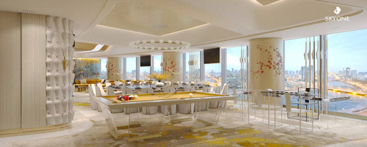 湾区塔尖圈层私享CLUB、塔尖名仕主题高定音乐艺术餐厅,云端书院、休闲健身、高端精品商业等,约258米垂直高度,天际行宫,自成都市。