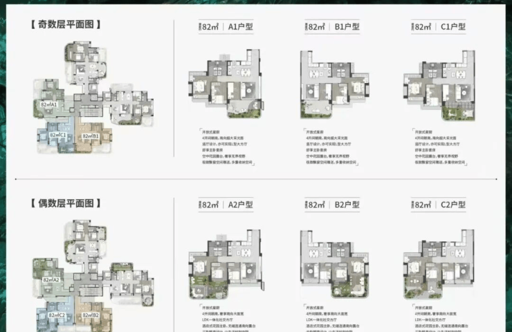采用围合式布局,形成中央大园林,每户南向采光,部分楼栋可望河景,社区还设有全龄化景观架空层、度假泳池、儿童游乐区等配套设施。