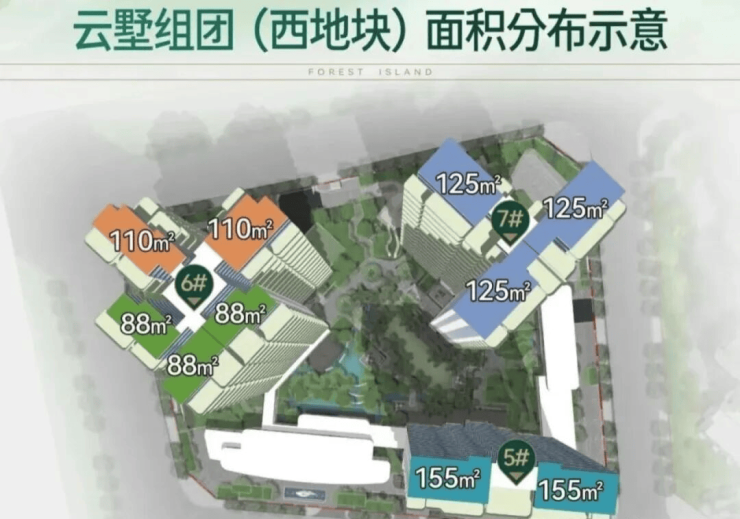 项目分为2个组团共7栋住宅,2个小地块,围合式布局,前排有3栋小高层。