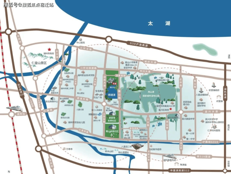 【无忧书香学府】:幼儿园、湖师附小(西山漾校区)、湖州四中(西山漾校区)、安定中学等优质教育资源环伺,起航学子未来。