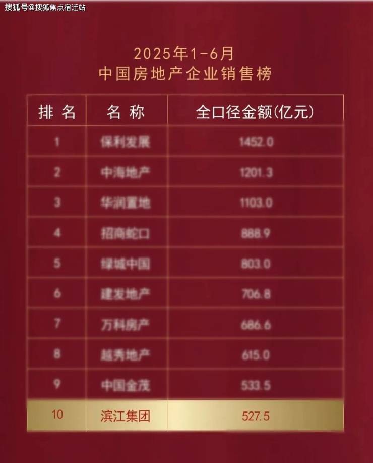 ✦ 滨江集团荣誉:千亿级领军民营房企,2025年上半年中国房地产企业百强TOP10,民营企业TOP1。(数据来源:克尔瑞)