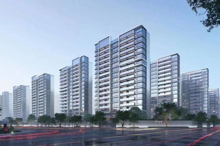 建筑风格在外立面上以天然石材搭配质感铝板和中空LOW-E玻璃,承耀光影下的立面质感。