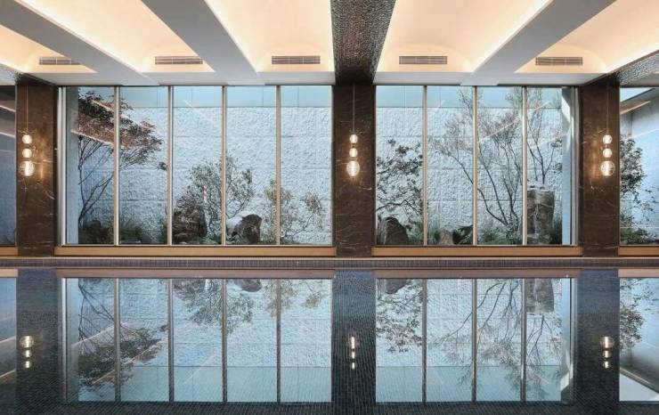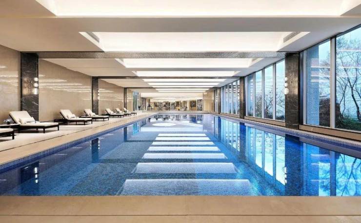 IFC大平层拥有的一线钱塘江江景,揽潮誉道也有。得益于巧妙的楼幢排布,全盘近一半房源,都能看到一线钱塘江江景。主厅更是拥有多面看江的U形大落地双转角厅。顶豪标配的会所,揽潮誉道也已实景呈现,约1000㎡体量,标配恒温泳池、健身房等。