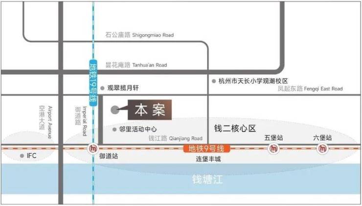 项目紧邻钱塘江,距离仅约400米,与杭州国际金融中心(IFC)相距约1公里,这一优越的地理位置不仅提供了便捷的交通条件,也确保了居住者能够享受到城市的繁华与自然的宁静。